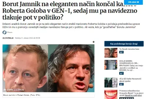 Sedaj vam obljavljamo še en citat iz članka z naslovom Borut Jamnik na eleganten način končal kariero Roberta Goloba v GEN-I, sedaj mu pa navidezno tlakuje pot v politiko? :