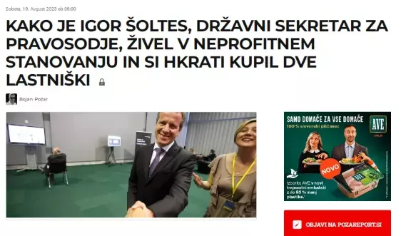 Ne smemo pa pozabiti na stanovanja Igorja Šoltesa. Eno si je v preteklosti kupil tudi na Obali. Ste že pozabili na raziskovalni članek dolgoletnega samostojnega novinarja Bojana Požarja z naslovom KAKO JE IGOR ŠOLTES, DRŽAVNI SEKRETAR ZA PRAVOSODJE, ŽIVEL V NEPROFITNEM STANOVANJU IN SI HKRATI KUPIL DVE LASTNIŠKI.