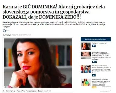 Mi smo v našem mediju na temo afere Litijska spisali članke z naslovom Karma je BIČ DOMINIKA! Akterji grobarjev dela slovenskega pomorstva in gospodarstva DOKAZALI, da je DOMINIKA ZERO!!! (12.2.2024), TRI ŠTRI ZDAJ DOMINIKA! Ankaransko Hrvatinski hrib poskrbel za filmsko uspešnico z naslovom NEPREMIČNINSKA PODRTIJA!, ENO KLJUČNIH VLOG v NEPREMIČNINSKI PODRTIJI JE ODIGRAL MOŽ Dominike Švarc Pipan, Matic Pipan??? Keš se znašel tudi v Dubaju?? in DOKUMENTI: Dominika Švarc Pipan LAŽE!PETEGA OKTOBRA 2023 JE SAMA IZRECNO POVEDALA, DA BO KEŠ ZA LITIJSKO ZRIHTALA PRI GOLOBU!. Kdor si je zelo pozorno prebral vsakega izmed njih je že zdavnaj ugotovil, kdo so ključni akterji afere Litijska.