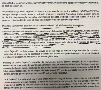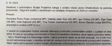 Tukaj si lahko preberete ključno vsebino sestanka z dne 5.10.2023 v kabinetu pravosodne ministrice. Jasno se vidi, da ji je Gojkovič povedal, da ni sredstev za izvedbo projekta. A se je temu jasno uprla Dominika Švarc Pipan in je povedala, da bo sama uredila finančna sredstva . (Foto: Prava.si)