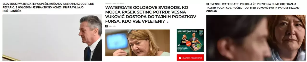 Dolgoletni raziskovalni novinar Bojan Požar je pretekli teden napisal serijo člankov, kjer je razkrival WATERGATE v sedanji vladi pod vodstvom dr. Roberta Goloba. V njih je problematiziral, da za potrebe političnega cirkusa nad mediji blizu desnice oz. medijem, ki so kritični do tranzicijske levice bila ustanovljena preiskovalna parlamentarna komisija, ki se ukvarja z financiranjem teh medijev. Kot kaže, do sedaj ni bil posebej pozoren na izjave nekdanje predsednice omenjene komisije Mojce Pašek Šetinc. Ob našem laičnem spremljanju afere je bila vsa spornost razkrita že v mesecih oktober in november 2023. Verjetno je zadeva medijski pospešek dobila z objavo Mojce Pašek Šetinc, da so ji na Delu cenzurirali njen intervju in nekaj njenih odmevnih medijskih izjav je takoj zatreslo Golobovo vlado. Še Vesna se je "odločila", da bo zapustila mesto generalne sekretarke Gibanje Svoboda. Jp, mogoče pa je le "ubogala" svoje bogove.