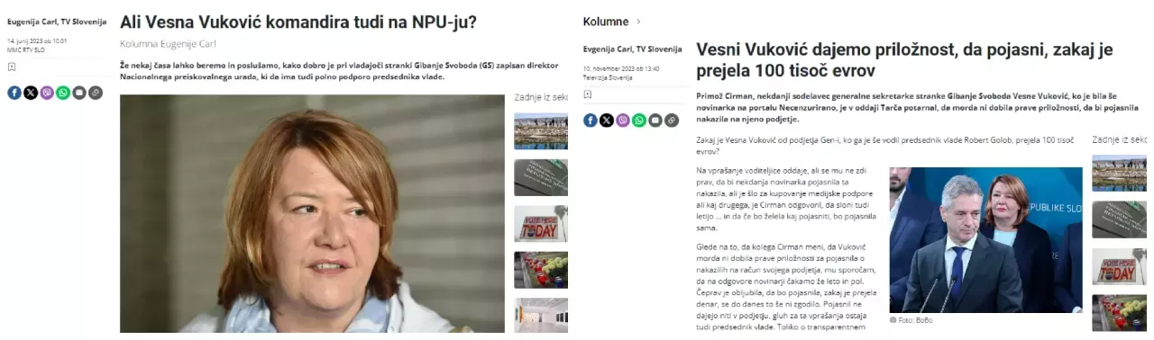 V preteklosti pa se je slovenska javnost že zgražala nad primerom, ko je Vesna Vukovič "podala kazensko ovadbo" in "nehote obiskala" še direktorja NPU Darka Muženiča. Ampak Vesne ne ganejo niti tvoja jasna opozorila Eugenija Carl, jebiga! Za njo sta bogova le Golob in Jamnik prosto po Sebastjanu Jeretiču!