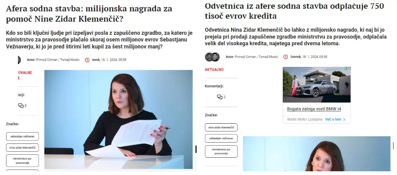 Spomnite se samo člankov na tem mediju, ki je do potankosti natančno razkrival zneske kredita Nine Zidar Klemenčič, vračilo dolga Vežnaverja žalskemu podjetniku Enisu Draganoviću itd.. Ali se mogoče spominjate, kako je v času zadnje Janševe vlade omenjena novinarska trojka uprizarjla medijske umore na urad za preprečevanje pranje denarja pod vodstvom dr. Damjana Žuglja? Prva poteza, ki jo je naredila Golobova vlada je bila odstavitev Žuglja in postavitev Anke Vrabec Božič z v.d. direktorico Urada za preprečevanje pranje denarja.