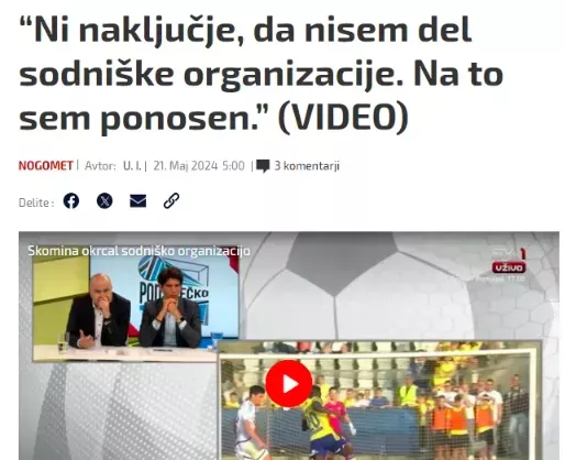 Še več kritičnih besed Zvezi nogometnih sodnikov Slovenije pa je Skomina namenil v posebnem intervjuju za Sportklub v članku z naslovom Damir Skomina: “Verjamem, da nisem ravno ‘persona grata'”.