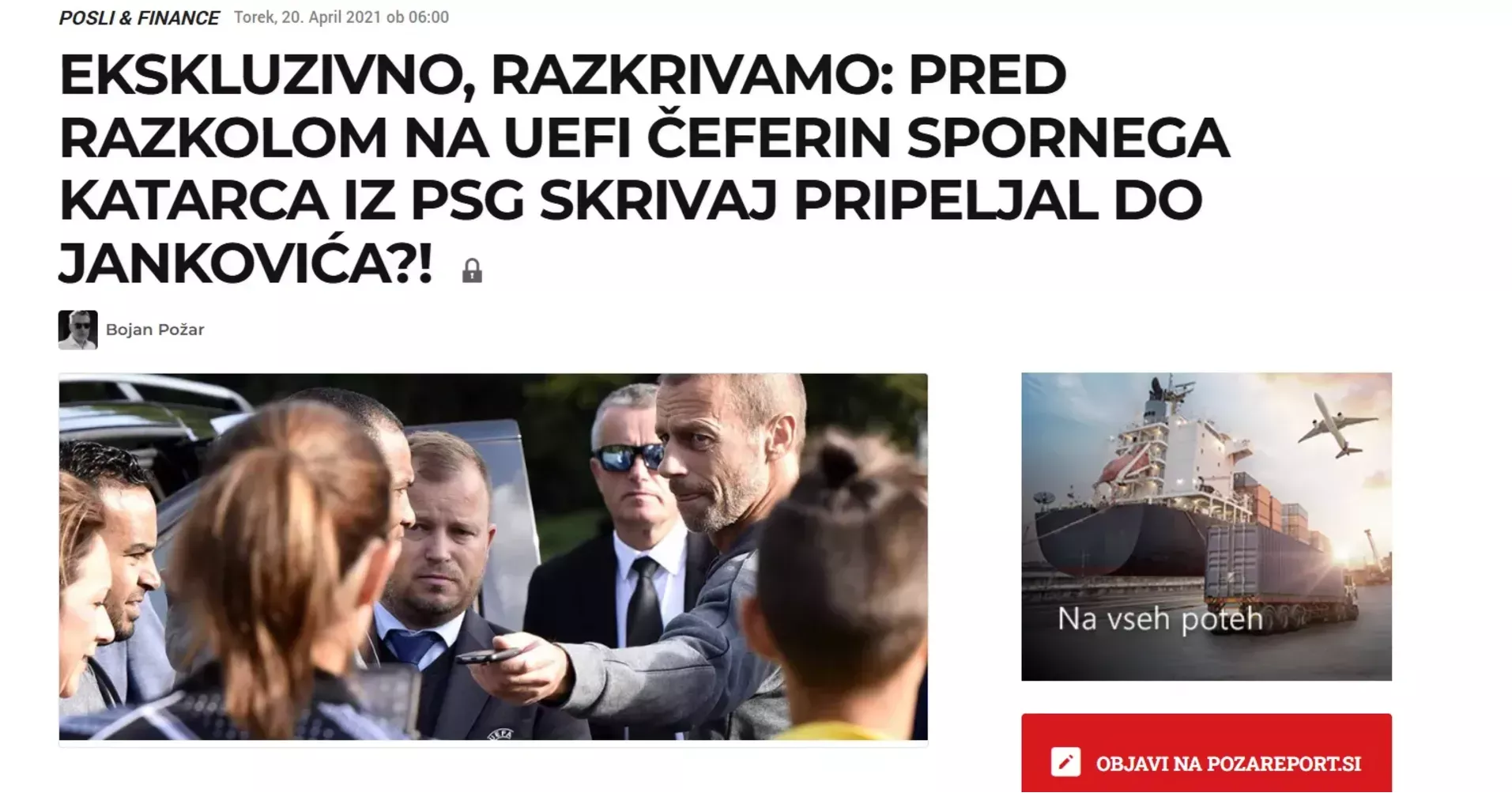 Gre za skrivnostni sestanek, ki ga je že pred časom v enem svojih člankov razkril dolgoletni raziskovalni novinar Bojan Požar (Ekskluzivno, razkrivamo: pred razkolom na Uefi Čeferin spornega Katarca iz PSG skrivaj pripeljal do Jankovića?!, objavljen dne 20. april 2021). Čeprav gre navzven morda zgolj za prijateljsko druženje, številni poznavalci opozarjajo, da so takšna srečanja lahko vse prej kot nedolžna – še posebej, ko združujejo najvplivnejše ljudi v evropskem nogometu, lokalni politiki in skrbno izbrani kraji daleč stran od oči javnosti.
