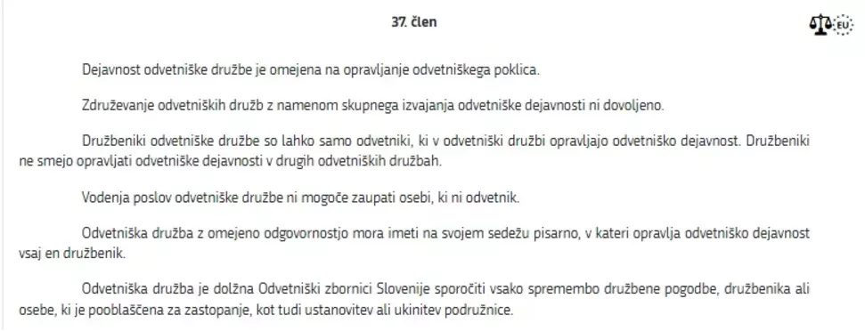 V 37. členu Zakona o odvetništvu je jasno razvidno, da Aleksander Čeferin zaradi službe na UEFI kot njen predsednik NE BI SMEL BITI od zasedbe funkcije LASTNIK ODVETNIŠKE PISARNE! (Foto: Posnetek zaslona- Zakon o odvetništvu)