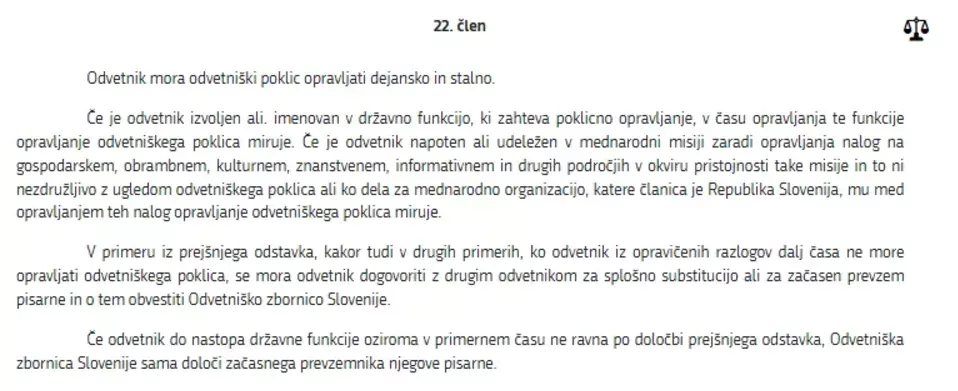 Sodba Sodišča EU dokončno potrjuje tisto, kar se bojijo predvsem v Odvetniški zbornici Slovenije. Sodba dokazuje, da v primeru Aleksandra Čeferina že desetletje dopuščajo domnevne sporne nezakonitosti. (Foto: Posnetek zaslona- Zakon o odvetništvu)