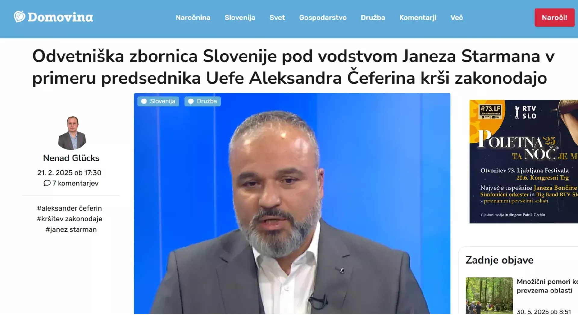 Raziskovalni novinar Domovine Nenad Glücks je razkril, da je Odvetniška zbornica Slovenije, kljub jasnim zakonskim določbam, zavestno zadržala status odvetnika Aleksandra Čeferina, kar omogoča njegovo nadaljnje prejemanje dobičkov iz odvetniške družbe. Njegova analiza vključuje tudi povezave z RTV Slovenija in drugimi pomembnimi akterji, ki so del omrežja, ki ščiti Čeferina pred pravnimi posledicami.