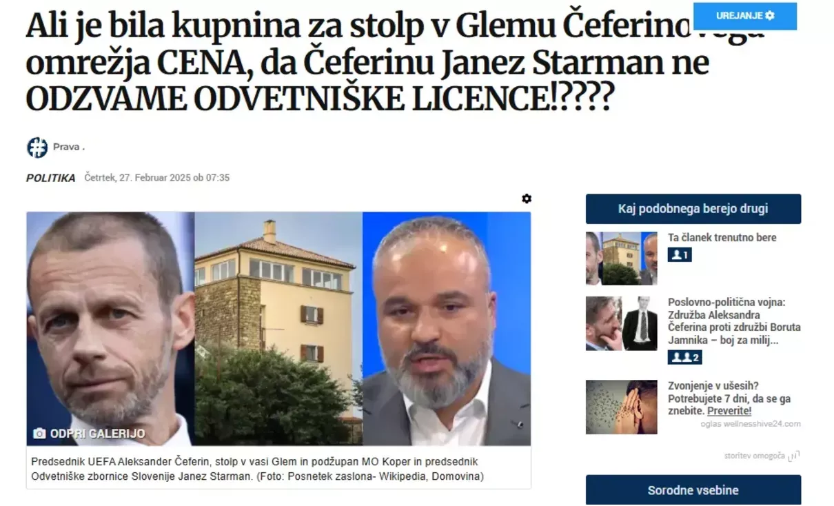 Odvetniška zbornica Slovenije, pod vodstvom Janeza Starmana, ki je bil v času odločanja o Čeferinovem statusu tudi podpredsednik zbornice, ni ukrepala v skladu z zakonskimi obveznostmi. Starmanove povezave z omrežji in sumljivimi posli so predmet dodatnih vprašanj glede integritete in neodvisnosti zbornice. Mi pa smo oba akterja razkrivali ob čudnem nakupu stolpa v Glemu, ki ga je zelo verjetno za Čeferinovo omrežje izvedla globalistična organizacija Fair Wage s sedežem v Nyonu. O tem smo pisali v člankih z naslovi Ali je bila kupnina za stolp v Glemu Čeferinovega omrežja CENA, da Čeferinu Janez Starman ne ODZVAME ODVETNIŠKE LICENCE!????, ???Zasebni biznis??? akterjev omrežja obalnega odvetnika Janeza Starmana v zadevi Glem izrabilo Čeferina za svoje parkirišče? in Kdo so ključni akterji globalistične mreže Fair Wage, ki stojijo za nakupom stolpa v Glemu?