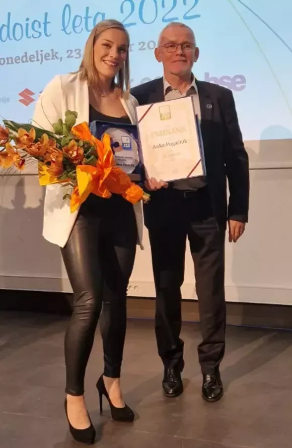 Trener Judo klub Triglav Kranj Brane Vuzem in njegova varovanka, judoistka leta 2022 Anka Pogačnik. (Foto: Posnetek zaslona- 24ur, Žiga Košec)