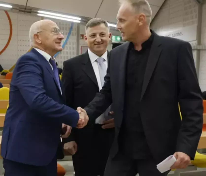 Sedanji predsednik Judo zveze Slovenije Bogdan Gabrovec, nekdanji predsednik Lovrencij Galuf in Peter Sevnik. (Foto: Posnetek zaslona-Delo)