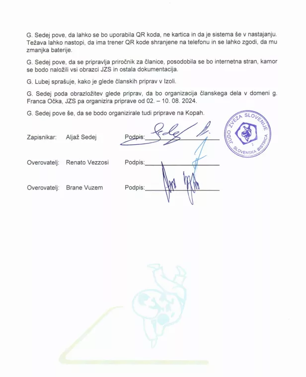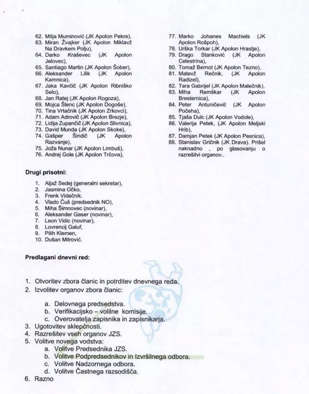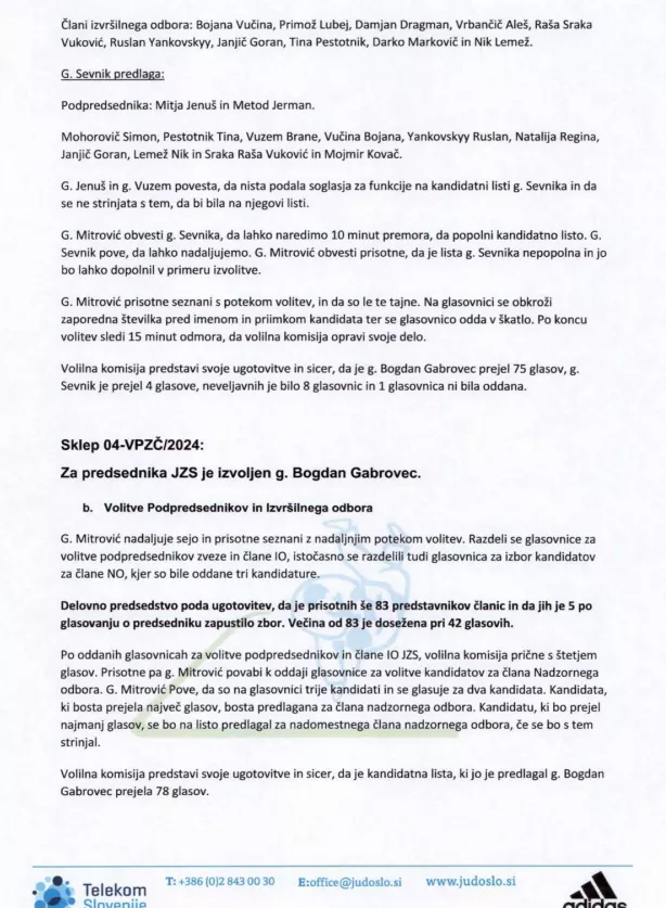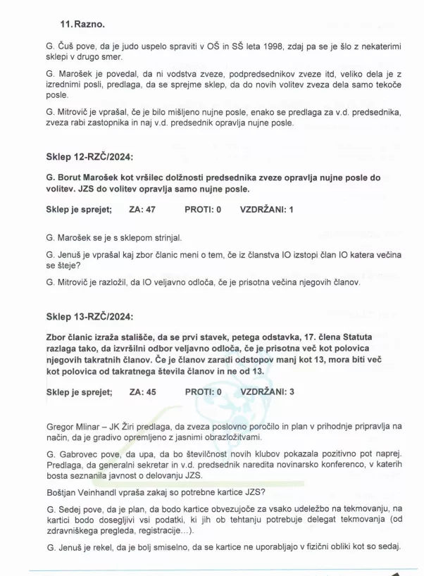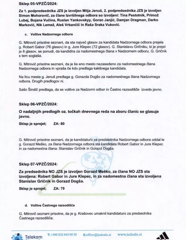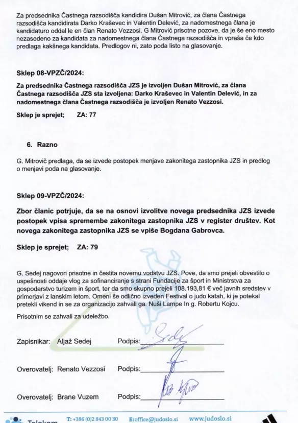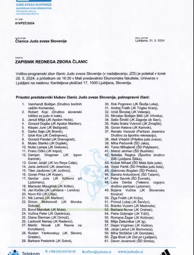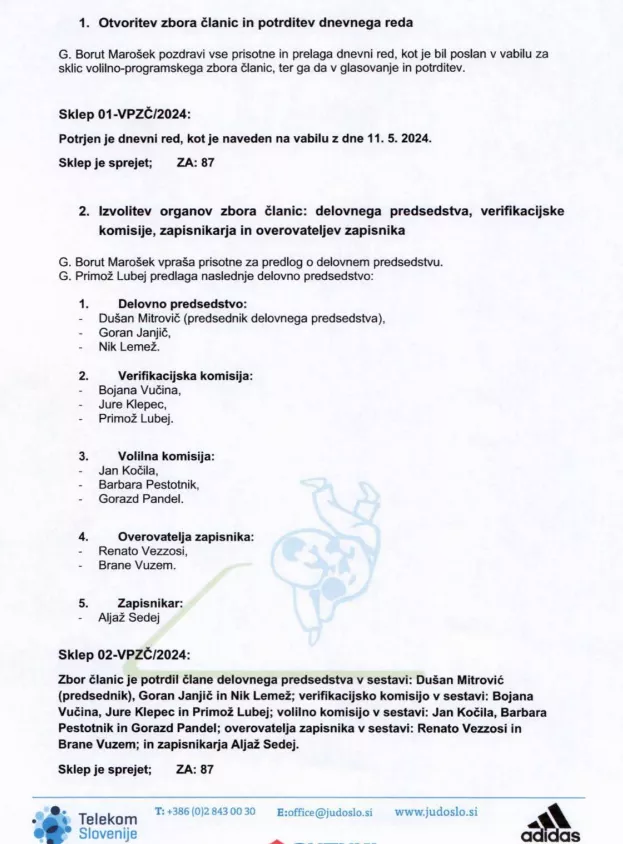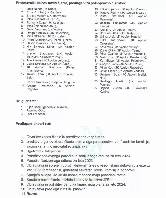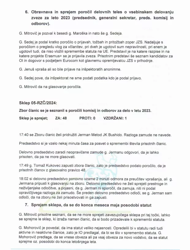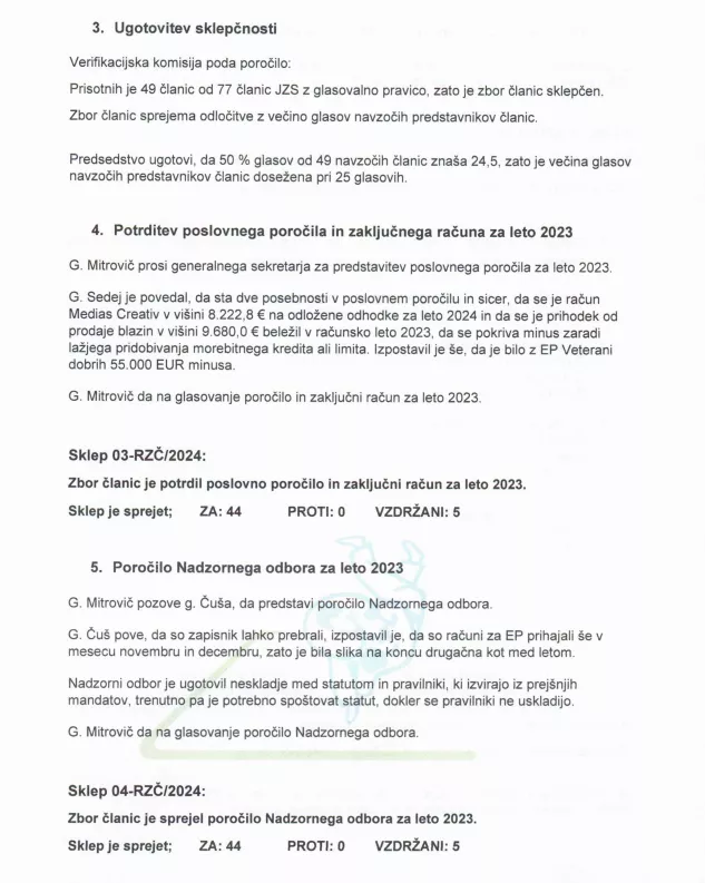 Zapisnik volilne skupščine JZS z dne 31.5.2024: