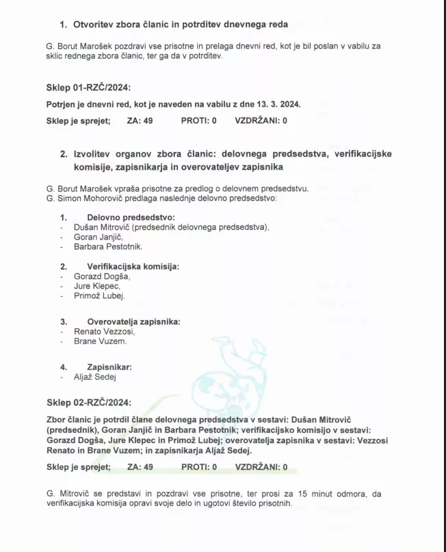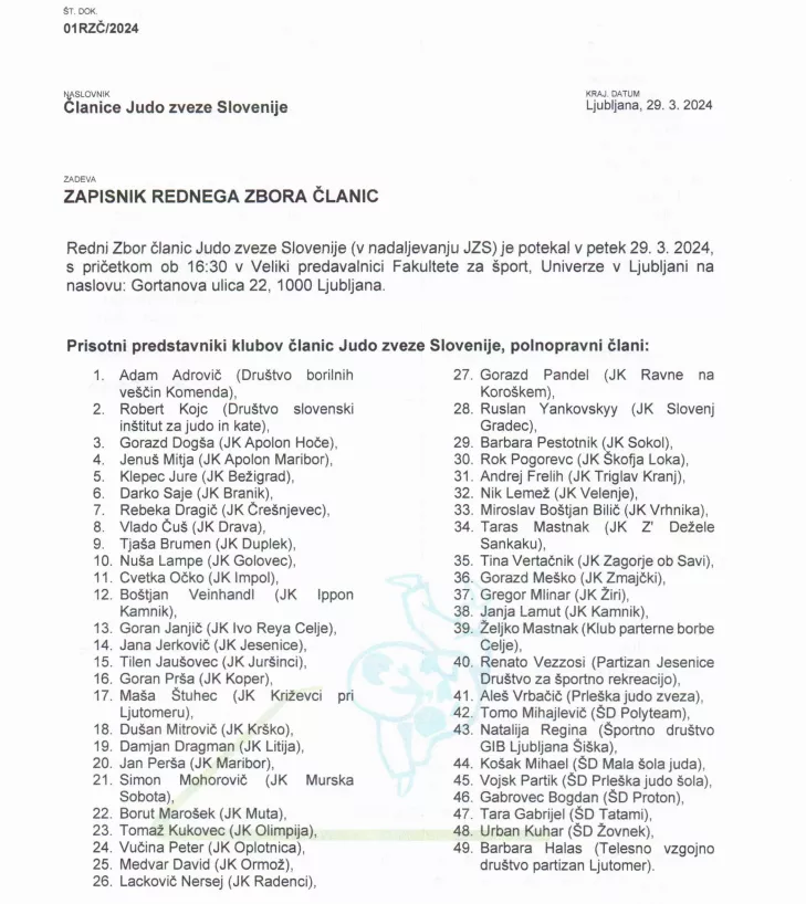 Zapisnik rednega zbora članic JZS dne 29.3.2024:
