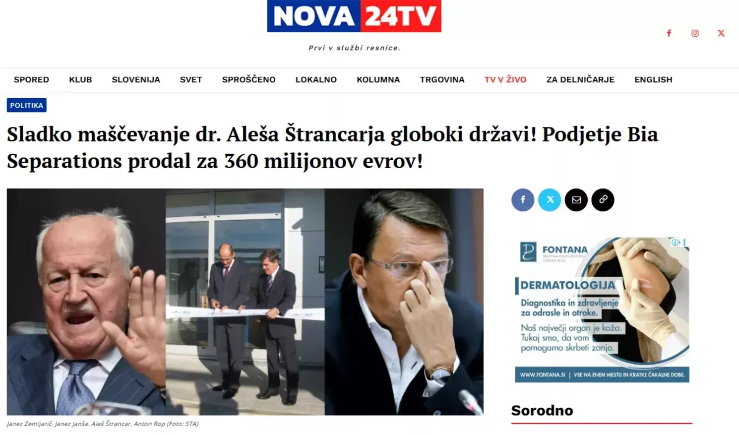 Avtor tega medija je Štrancarjevo zgodbo že v preteklosti predstavil kot novinar portala Nova24, ko mu je uspelo podjetje BIA Separations prodati nemški družbi Santoriousu za 360 milijonov evrov. Podjetnik Aleš Štrancar je ena redkih oseb, ki jih sile vzporednega mehanizma še niso uspele zlomiti.