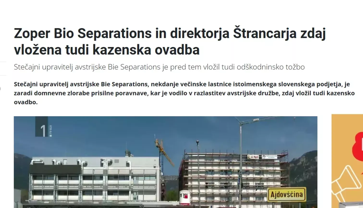 Sedež podjetja Bia Sepations v Ajdovščini. (Foto: Posnetek zaslona-Žurnal24)