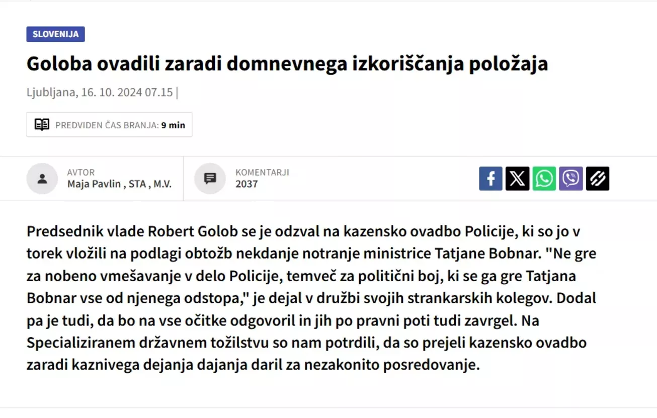 Jasno je, da pravno-politična odgovornost leži izključno na Robertu Golobu. Tina Gaber je sicer glavna protagonistka, a brez aktivnega posredovanja predsednika vlade do afere ne bi prišlo. Golob je s svojimi pritiski in zahtevami omogočil kršitve, uporabil državno infrastrukturo in s tem prevzel celotno odgovornost za posledice.