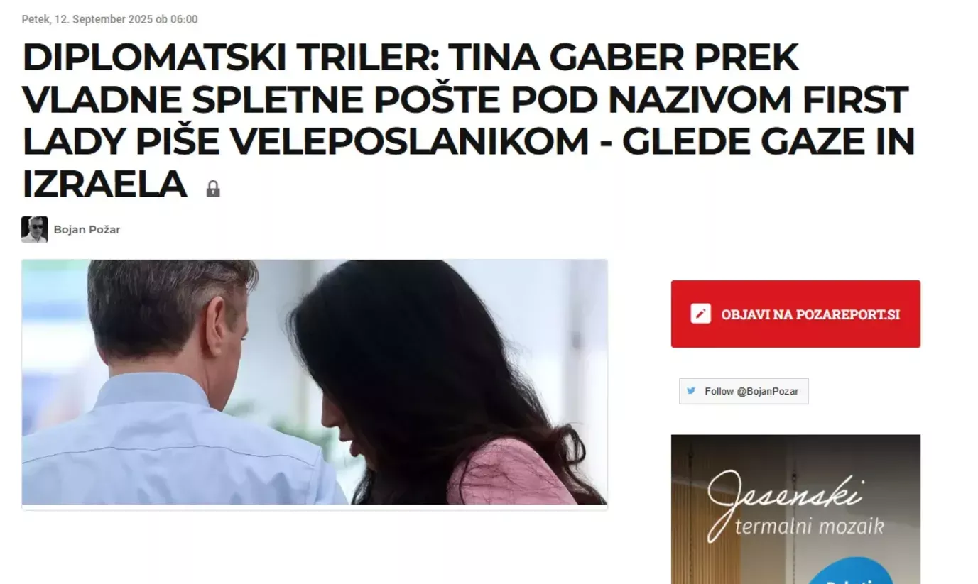 Afera, ki je v javnosti znana kot zgodba o »pismih prve dame«, je na prvi pogled delovala kot nenavadna in nekoliko bizarna epizoda. Partnerka predsednika vlade Roberta Goloba, Tina Gaber, je namreč prek elektronske pošte nagovarjala slovenske veleposlanike in žene tujih predsednikov vlad, naj se pridružijo političnemu pozivu v podporo Palestini in obsodbi Izraela.