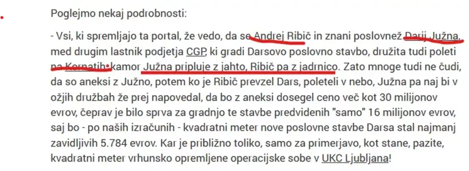 Ne smete pozabiti, da sta v preteklosti tako dolgoletna raziskovalna novinarja Bojan Požar (Požareport) in Mirko Mayer (Tedenski safari, Zanima.me) razkrila, da so bili akterji blizu krogov Aleksandra Čeferina in Dareta Južne ključni, da se je na mesto predsednika družbe DARS zavihtel Andrej Ribič. V kratkem Ribičevem mandatu pa je prav Južnin CGP prišel do novih gradbenih poslov, kjer je naročnik DARS. Odmevala je predvsem oddaja posla v zadevi Lukovica, kot je v preteklosti že razkril spletni raziskovalni medij Info360.si.