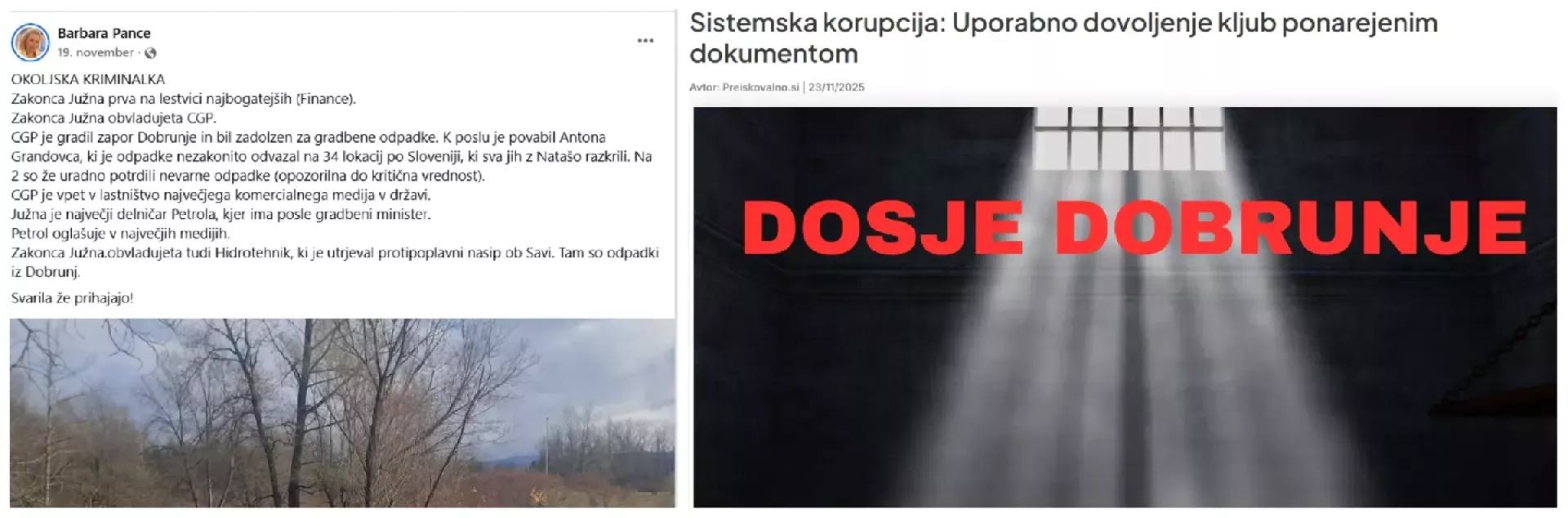 Novinarka spletnega medija Preiskovalno.si Barbara Pance je skupaj s svojo novinarsko kolegico Natašo Markovič sta napisali obširen novinarski raziskovalni dosje o gradnji zapora v Dobrunjah, kjer je bil osrednji graditelj Južnin CGP. (Foto: Posnetek zaslona- FB in Preiskovalno.si)