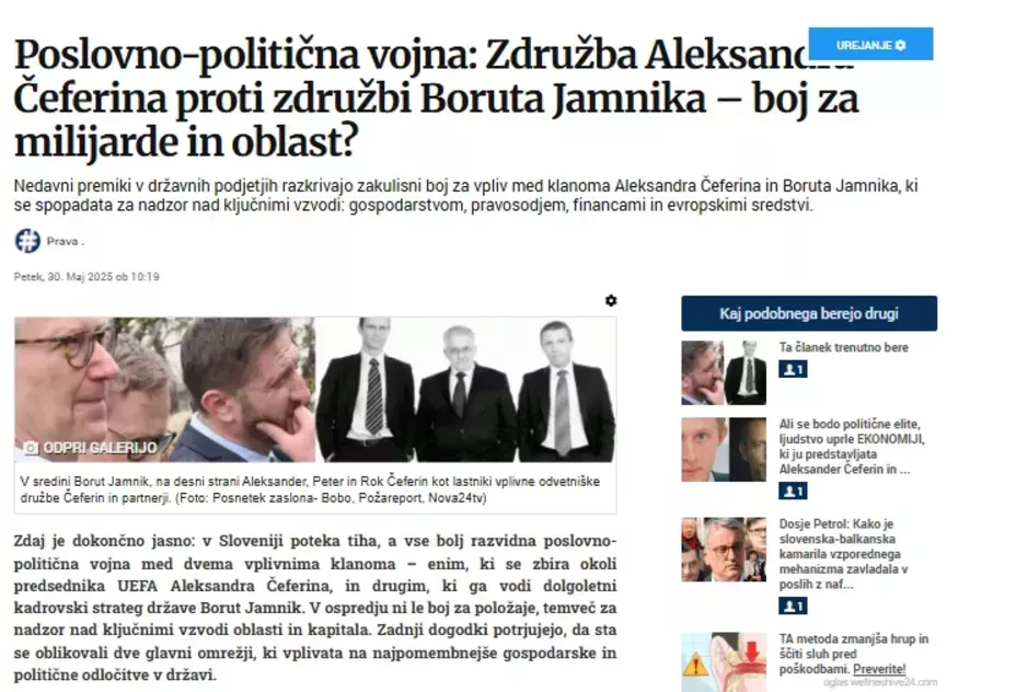 Mi smo v člankih z naslovom Poslovno-politična vojna: Združba Aleksandra Čeferina proti združbi Boruta Jamnika – boj za milijarde in oblast? z dne 30. maja 2025 ter v članku Ali se bodo politične elite in ljudstvo uprle ekonomiji, ki jo predstavljata Aleksander Čeferin in Borut Jamnik? postavili drzno tezo, da se ključni ekonomsko-politični boj v ozadju bije prav med omenjenima akterjema.