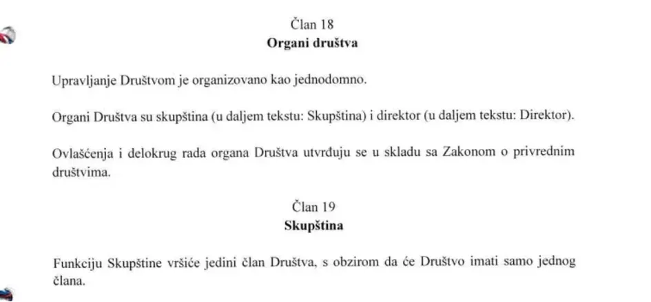 Pogledati je treba statut družbe GEN-I SNABDEVANJE Beograd iz leta 2024, kar smo vam ponazorili s ključnimi členi. Jasno je, da sta tukaj morala biti DVA, ki sta se dogovorila za kakšen način poslovanja bo šlo. Kar bi pomenilo, da dva subjekta denar le prenakazujeta.