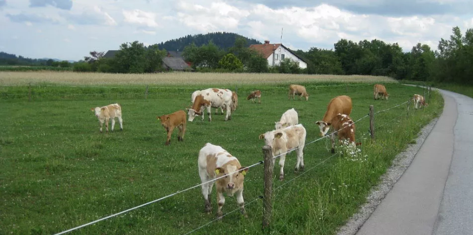 Obdelujemo 20 ha kmetijskih zemljišč, od tega je 6 ha travnikov, kjer se pase naša goveja živina. Čreda obsega 12 krav rejnic in mlado živino – teleta, ki so skupaj s kravami vse do 8 meseca ko so godni za prodajo kot BIO teletina.