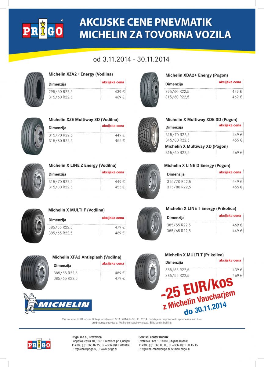 Z Michelinovimi pnevmatikami na pot dolgoročnih prihrankov! Znižajte stroške porabe! Pnevmatike Michelin se ponašajo s svojo dolgotrajnostjo, enostavnim vzdrževanjem in prihranki goriva!