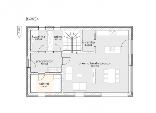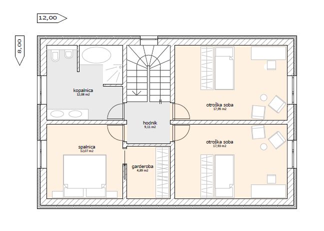 Hiša Doris je tradicionalne podolgovate tlorisne zasnove s klasično dvokapno streho, podaljšano nad teraso, kar daje objektu pridih sodobnega. Pritličje zajema predprostor, kopalnico, utility, kabinet ter velik osrednji dnevno – bivalni prostor, zraven kuhinje pa se nahaja še shramba. V mansardi sta dve enako veliki otroški sobi, spalnica z garderobo ter udobna kopalnica. Neto tlorisna površina objekta znaša 148,27 m2.