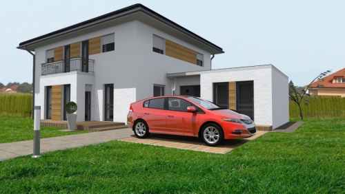 Hiša Ajša pritegne s sodobnim izgledom in funkcionalno zasnovo. Zasnovana je kot mansardni objekt, pri čemer se v pritličju poleg velikega dnevno – bivalnega prostora nahajata še soba za goste ter delovni prostor, v mansardi pa so predvidene sobe ter sodobno oblikovana kopalnica. Neto tlorisna površina objekta znaša 173,09 m2, pri čemer štirikapna streha omogoča dobro izkoriščenost mansarde.