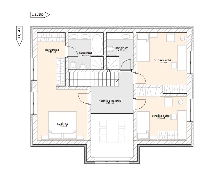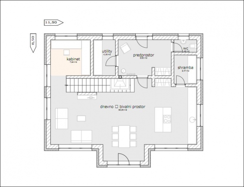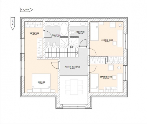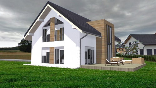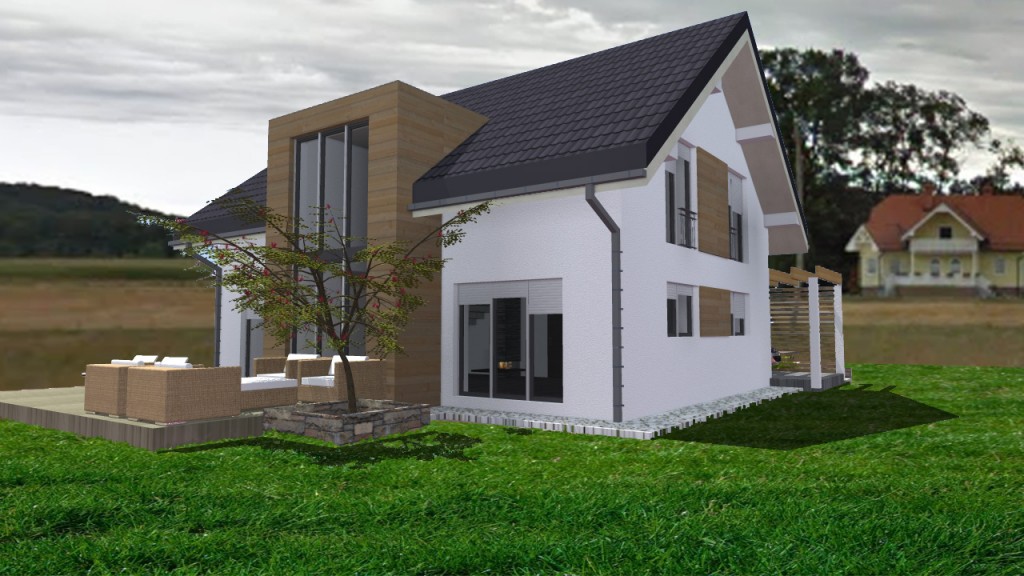 Hiša pritegne s sodobnim izgledom in funkcionalno zasnovo. Zasnovana je kot mansardni objekt, pri čemer se v pritličju poleg velikega dnevno – bivalnega prostora z galerijo in tehničnih prostorov nahaja še kabinet, v mansardi pa so predvidene sobe ter kopalnici, ločeni za spalnico ter otroški sobi. Neto tlorisna površina objekta znaša 145,18 m2.