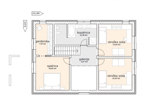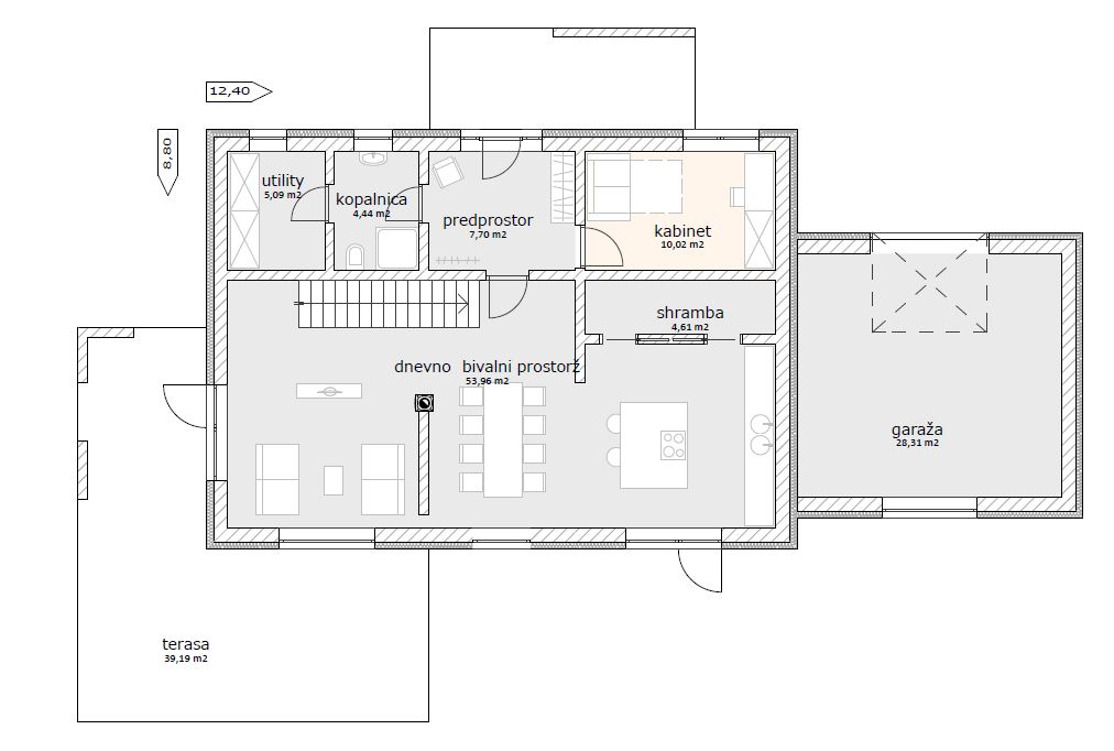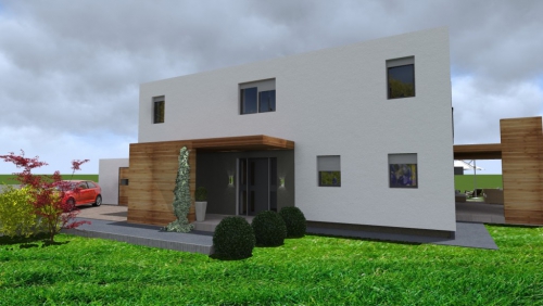 Hiša Danaja je moderna hiša z ravno streho, ki odgovarja potrebam sodobnega življenjskega sloga. Večji del pritličja tako zajemajo dnevno – bivalni prostori, to so kuhinja s shrambo, jedilnica in dnevna soba s stopniščem. V pritličju pa najdemo še kabinet, manjšo kopalnico ter utility. V mansardi z galerijo se nahaja spalni del objekta, ki zajema spalnico z garderobo, dve otroški sobi ter kopalnico. Neto tlorisna površina objekta znaša 158,52 m2.