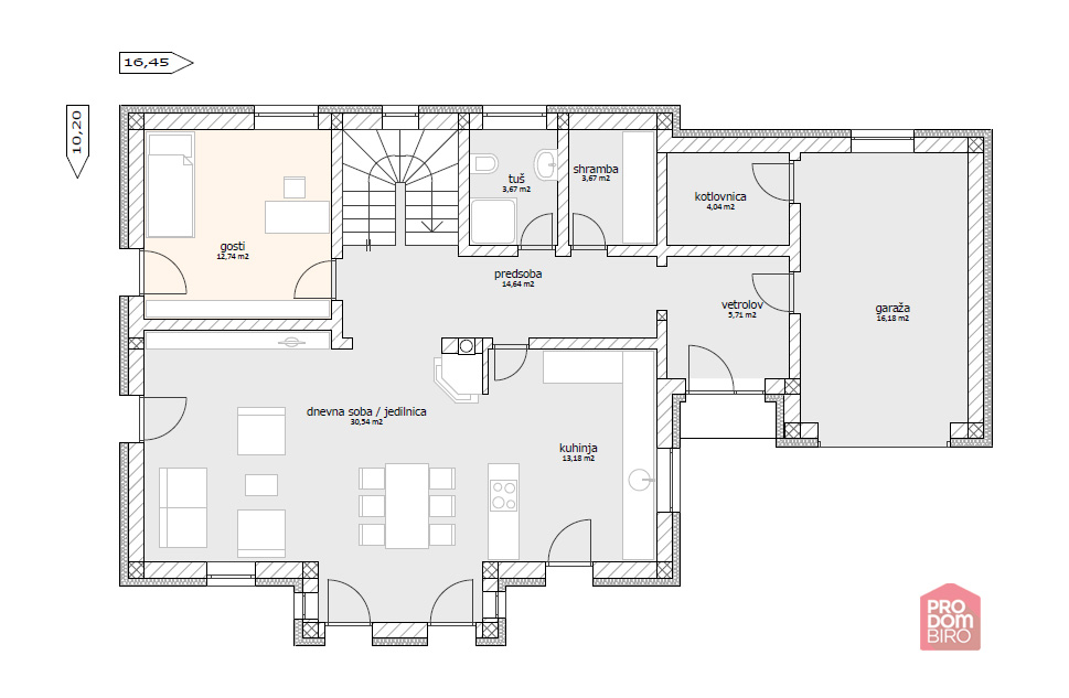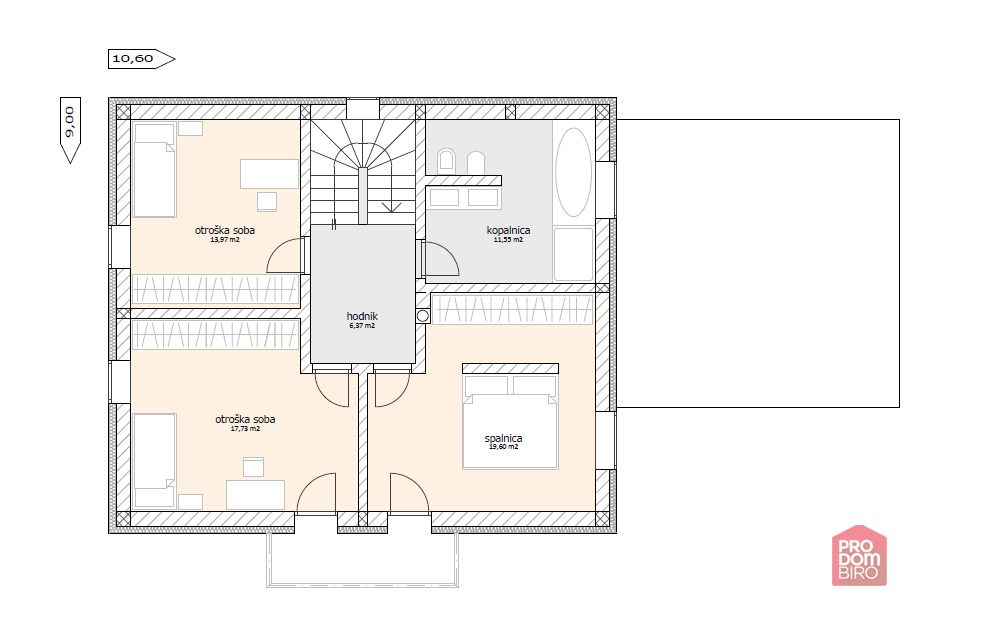 Hiša Azra je klasične zasnove in omogoča prijetno družinsko bivanje. Azra je zasnovana kot mansardni objekt z zračnim skupnim dnevno – bivalnim prostorom v pritličju in odgovarja sodobnemu načinu življenja. Pritlični prizidek je izkoriščen kot garaža, povezana z bivalnimi prostori preko vhodnega podesta. Neto tlorisna površina objekta znaša 173,59 m2.