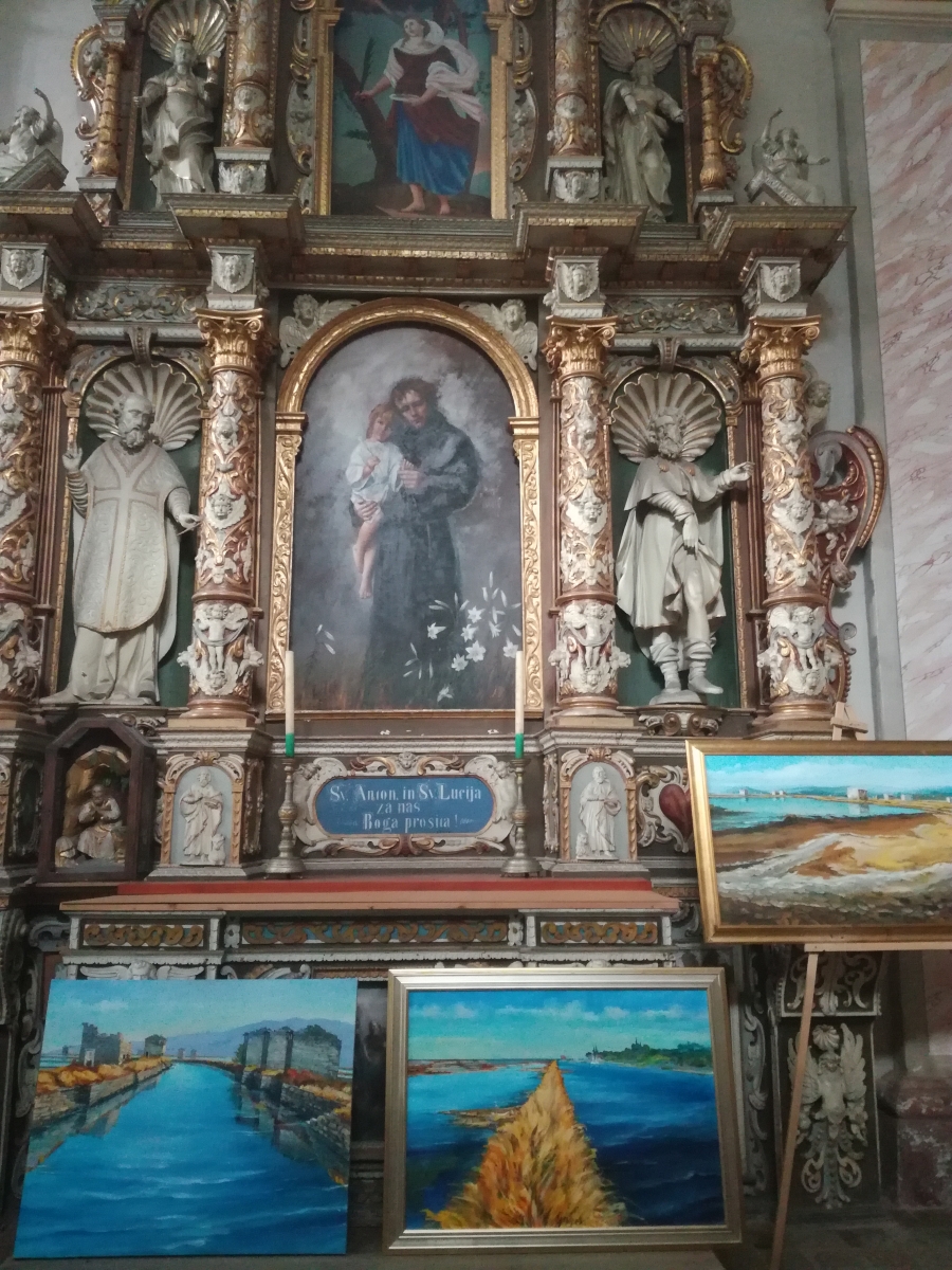 Danes sem obiskala razstavo slik v cerkvi Sv. Trojica na Vrhniki, ki je po navadi zaprta. Zato me veseli, da je cerkev ta teden odprta za obiskovalce in sem si jo lahko ogledala tudi od znotraj in ne kot po navadi le od zunaj, ko se sprehajam po številnih stezicah na tem hribu. Cerkev Sv. Trojice je zelo lepo poslikana in ohranjena. Ob oltarju sta čudoviti freski Jezusovega Krsta v reki Jordan ter prizora Transfiguracije na gori Tabor.