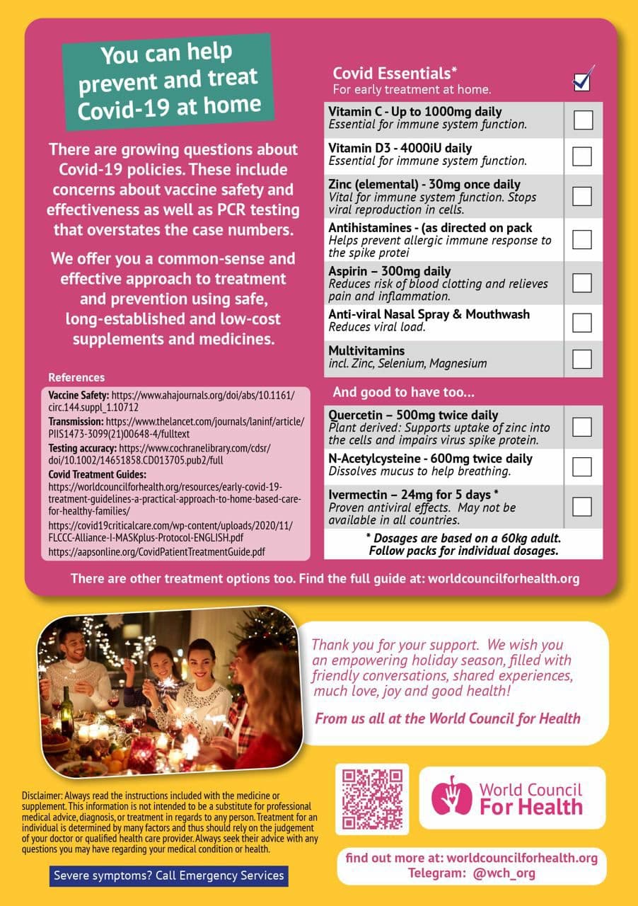 Protokol zdravljenja COVID-19 kanadskih zdravnikov: https://www.canadiancovidcarealliance.org/wp-content/uploads/2022/10/CCCA-Prevention-Early-Treatment-Guide-for-COVID-19-Oct-20-2022.pdf
