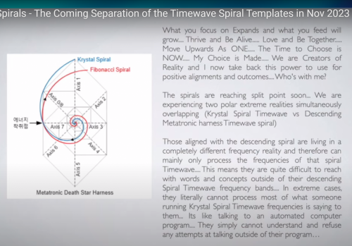 https://www.youtube.com/watch?reload=9&fbclid=IwAR2loGYcFrcgw_CQAyl4wZb_SOQ9P8I_euIFPS-lwI2zqs7yW2qd9dCnC2w&v=K4EnNLGXlKc&feature=youtu.be Timewave Spirals - The Coming Separation of the Timewave Spiral Templates in Nov 2023