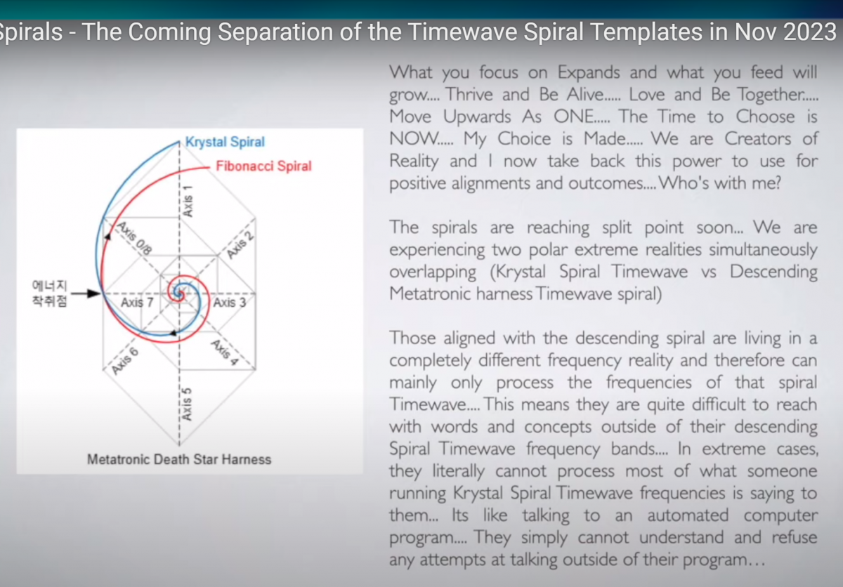 https://www.youtube.com/watch?reload=9&fbclid=IwAR2loGYcFrcgw_CQAyl4wZb_SOQ9P8I_euIFPS-lwI2zqs7yW2qd9dCnC2w&v=K4EnNLGXlKc&feature=youtu.be Timewave Spirals - The Coming Separation of the Timewave Spiral Templates in Nov 2023