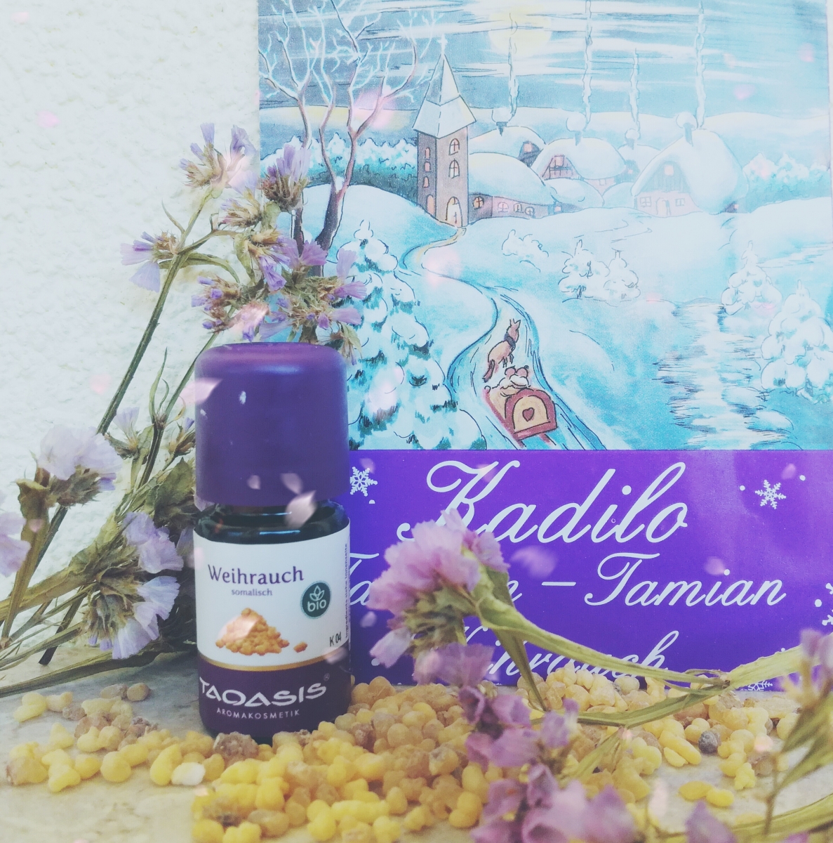 - eterična olja zim zelena + poprove mete + nemška kamilice
