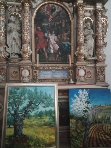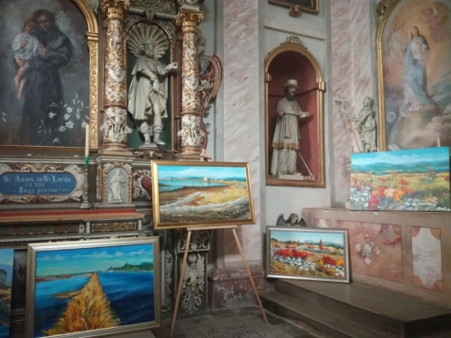 Društvo Nauportus Viva je v cerkvi organiziralo razstavo slik Vojka Gašperšuta Gašperja, ki je slike naslikal z čopičem v ustih, kar je izjemen dosežek. Te slike s krajinskimi in verskimi motivi se lepo ujemajo in poživijo notranjost cerkve s svetlimi, pretežno modrimi odtenki neba in morja.