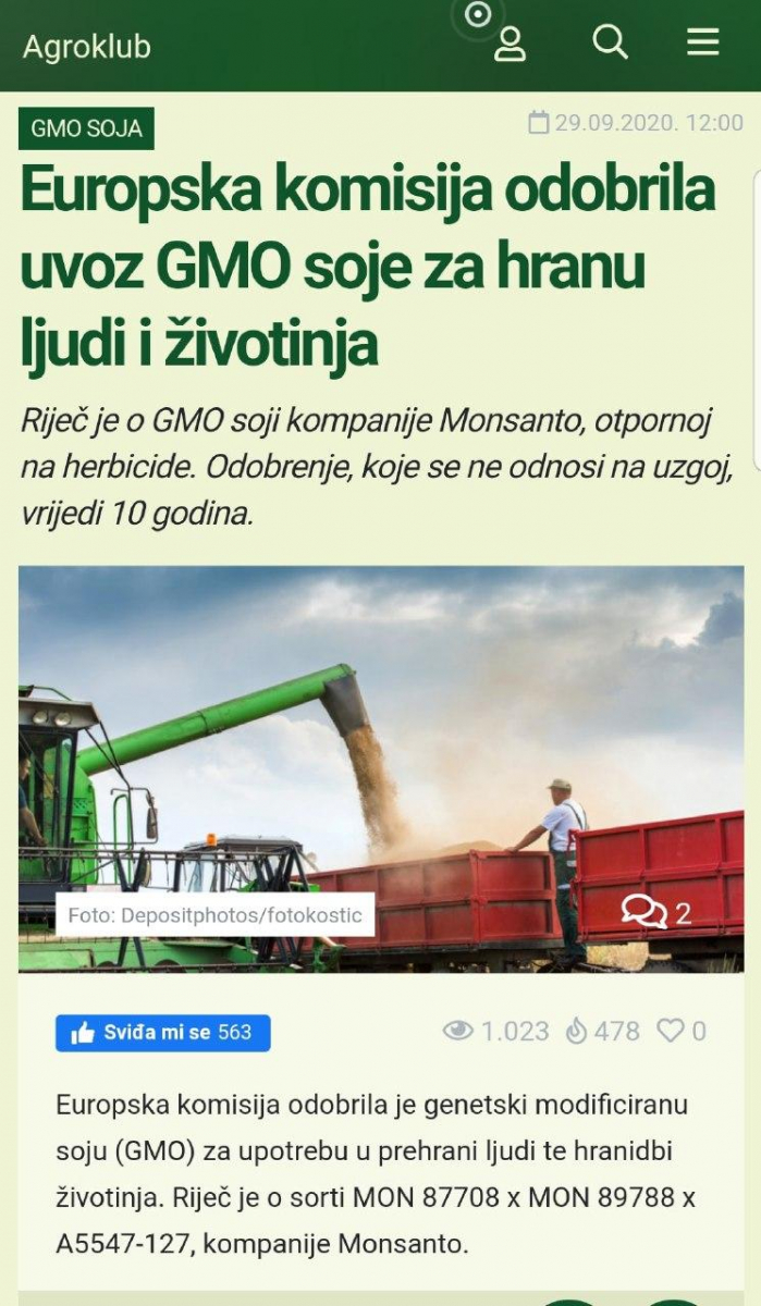 Uporaba glifosata na GSO koruzi in GSO soji se je iz 2000 ton v letu 1989 povečala na 87.000 tov v letu 2010. Monsanto, ki ga je letos kupil nemški Bayer, je ves čas zavajal javnost in lagal, da je glifosat varen. V resnici pa so skrivali dejstvo, da Round Up škropivo vsebuje skrivne, še bolj strupene dodatke-