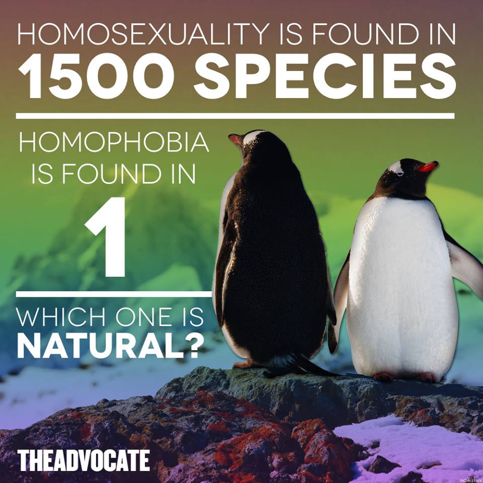 Homoseksualnost je prepoznana pri 1500 vrstah, HOMOFOBIJA samo pri eni. Kaj je potem 'naravno'??