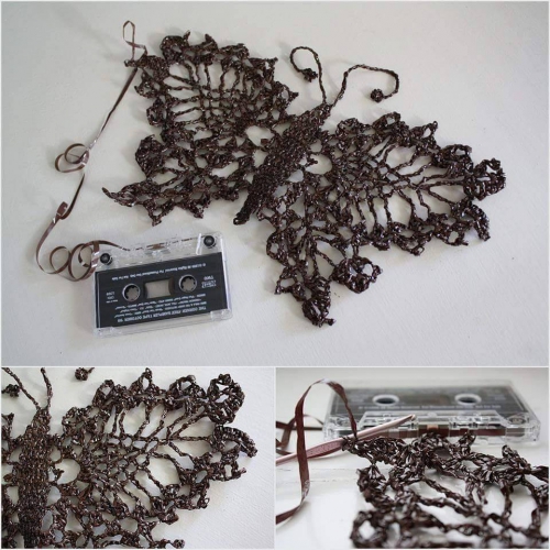 Potrebujemo le stare odslužene kasete, kvačko in malo ustvarjalnega navdiha. Zanimiva kreacija, ki je videti kot metalna, kar diši po pomladi, s svojo kvačkano luknjičasto strukturo daje videz prosojne čipke.