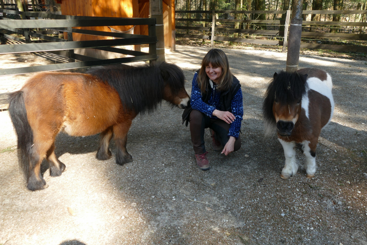 Tu pa sta še mini šetlanski ponijki Ariela in Nimfa, mati in hči, ki sta prišli iz dobrih rok, a neustreznega okolja, saj sta prebivali na velikih pašnikih s premočno travo. Imata močan laminitis in bivši lastniki prispevajo za njuno prehrano. Imata strogo dieto, zdravila in veliko gibanja. Potrebujeta redno obrezovanje kopit in dobro zunanjo podlago in v dobrem letu bivanja v centru ne čutita več bolečin v nogah.