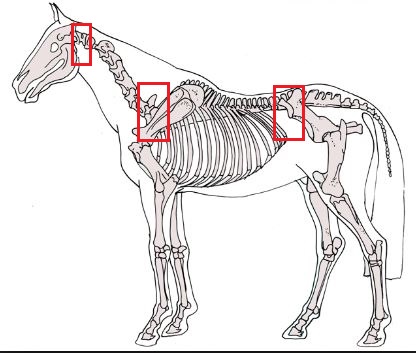 Tri mesta v konjevem telesu so še posebno občutljiva, če se kaj premakne s svojega mesta, se poškoduje ali ne deluje pravilno. Govorimo predvsem o vretencih, mišicah, fascijah in drugih vezivnih tkivih. Velikokrat se to zgodi ob padcu bodisi na terenu, tekmi ali v izpustu. Včasih je dovolj že zdrs ene od nog po gladki, betonski površini. Interakcije konj v čredi, brce, ugrizi ali težke žrebitve dodajo svoje. Tudi ob vstajanju in leganju tako velike živali, kot je konj, še posebno v majhnem boksu, se lahko zgodi, da konju zdrsne, se uleže preblizu stene ali udari z okončino ali glavo ob krmilnik ali zid. Nekateri konji so že konstitucijsko po naravi bolj nagnjeni k težavam v teh predelih. Npr. konji, ki imajo malo prostora med čeljustjo in atlasom, konji z visoko nasajenim kratkim ali debelim vratom ali konji s podrtim križem ali t. i. konji s »hunter's bump« (pretirano izrazita sakralna grča). Žal pa je zelo pogost vzrok tudi nepravilen trening konja, še posebej če traja daljše časovno obdobje in če poteka prehitro ali na nivoju, za katerega konja nismo postopno pripravili oz. kateremu še ni kos. Trdi, močni, nenadni potegljaji na eno vajet, še posebno izmenično, lahko dobesedno premaknejo konjevo prvo vretence s svojega mesta.