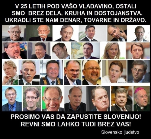 Pa saj jih ni toliko, te pokvarjene elitne nesnage, ki nam maže to deželo, da se jih ne bi dalo ukrotiti in spraviti za rešetke, le voljo bi morali pokazati, mi državljani, če se ne zganejo tožilstva in sodišča...,vzeti bi si morali tudi nekaj svojega dragocenega časa, da napravimo red v naši družbi. Ne recite mi, da se ne da, zaradi raznih varnostnih služb in političnih povezav, pa kdo nas lahko ustavi, družba moja, kdo, policija? Ja pa kdo za vraga ima največ pravice v tej deželi, če ne ljudstvo, kdo?