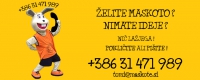 Oblikovanje in izdelava MASKOT za marketinške akcije, promocijo blagovne znamke, animacijo, društva, športne ekipe, šole, vrtce... Odlikujejo nas hitra odzivnost, kratki roki izdelave, vrhunski materiali in izdelava, ter umetniški pridih! Več na: WWW.MASKOTE.SI