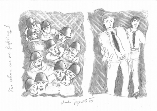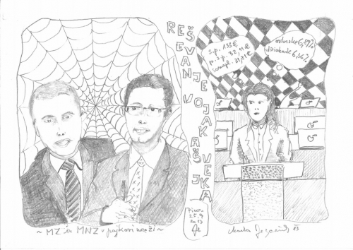 Reševanje vojaka Švejka MZ in MNZ v pajkovi mreži Risba s svinčnikom&Radiranka; Dimenzija: 19 x 29 cm