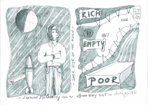Gataway for Slovenia - Lunar Embassy Dark side of the Moon Pencil drawing&Rubber; Dimension: 19 x 29 cm