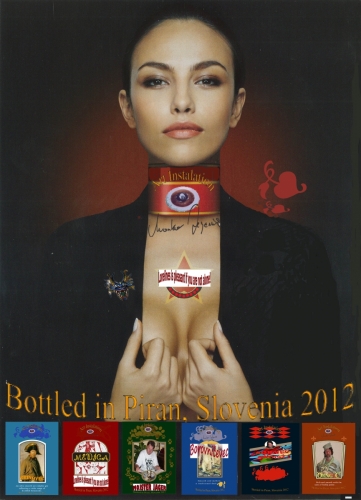 Art Instalations in small glass containers. Collection: ORNG C Garibaldi, Brinovec Napoleon, Sadjevec Sadist, Medica, Mojster Jager, Borovničevec...