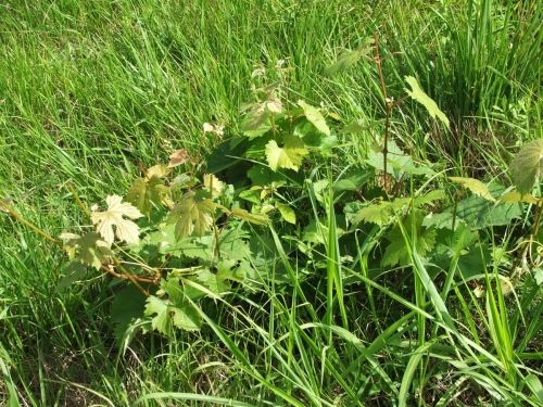 Še zadnja strategija po 7 letih neuspeha(100% škode): strategija dviga trte do druge žice: ko prva veja po tleh prileze do dolžine 2m in jo privežem na oporno palico, med tem ni možno kositi, v travi pa se razvija peronospora, ki bo naslednje leto pojedla ves pridelek celega vinograda.