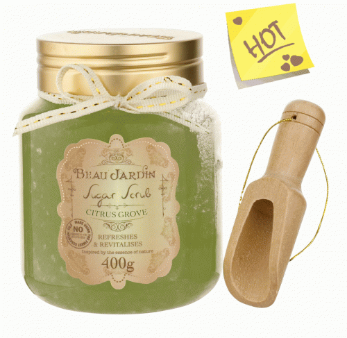 BJ - Sladkorni peeling Citrus grove, kožo prijetno omehča in odstrani odmrle celice ter jo pusti prijetno odišavljeno po citrusih, mmm opojno!